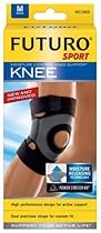 INDICATIONS: Futuro sport open patella knee support model no# 401503 with moisture releasing technology medium is ideal for people with mild swelling around the knee. Revolutionary new design using Polartec Power Stretch RX materials.